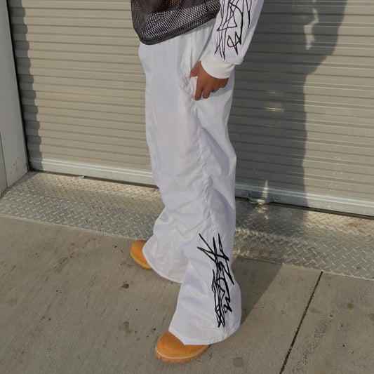 Huilin OEM Großhandel Elastische Taille Nylon Track Jogginghose Männer Benutzerdefinierte Druck Logo Gerade Weite Bein Baggy Track Hose