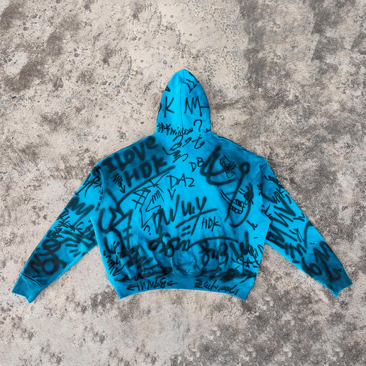 Streetwear Thick Cotton Unisex Oversized Hoodies Custom Allover Printed Graffiti Mens Heavyweight Graphic Hoodie