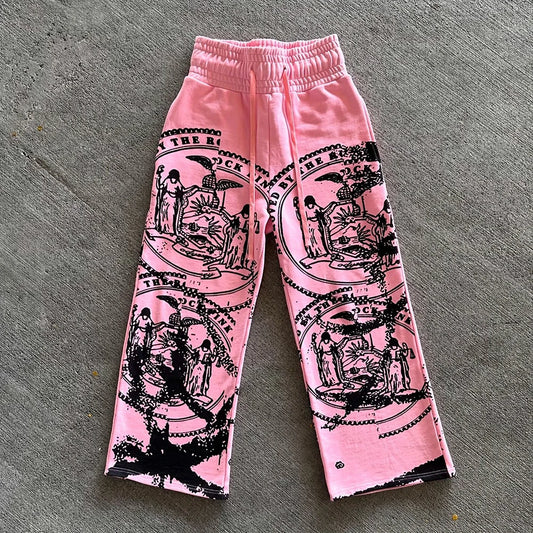 Huilin Hochwertige Streetwear-Jogginghose mit Grafik, individueller Siebdruck, Herren-Jogginghose aus schwerer Baumwolle mit weitem Bein