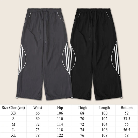 Huilin Low Moq Selling Gestreifte Trainingshose aus Nylon mit Seitentaschen für Herren, maßgeschneidert, gerade, weites Bein, übergroße Baggy-Fallschirmhose