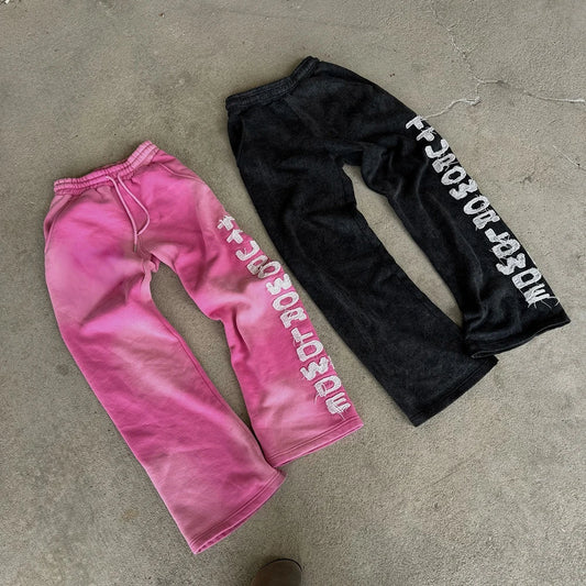 Winter-Jogginghose aus dicker Baumwolle im Used-Look, gewaschen, benutzerdefinierte Herren-Übergröße, weites Bein, Strass-Logo-Druck, Baggy-Jogginghose
