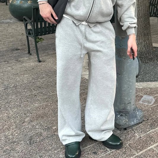 Huilin Heißer Verkauf Winter Dicke Baumwolle Weite Bein Jogginghose Benutzerdefinierte Einfarbig Männer Übergroße Passform Blank Baggy Jogginghose