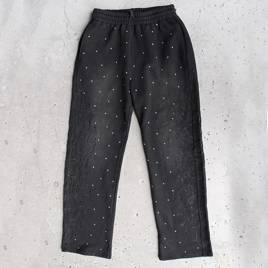 Huilin Custom 2-teiliger Streetwear-Trainingsanzug, Sweatsuits, schwere Baumwolle, Vintage, gewaschen, Herren, Strass-Kapuzenpullover, Jogginghose, Sets