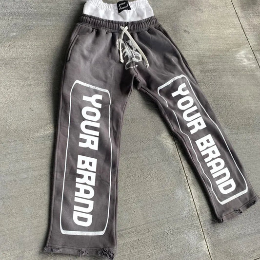 Benutzerdefinierte leere, schlichte Jogginghose, gestapelt, individuell bedrucktes Logo, Kordelzug, lässige Jogginghose, ausgestellte Jogginghose, Herrenhose
