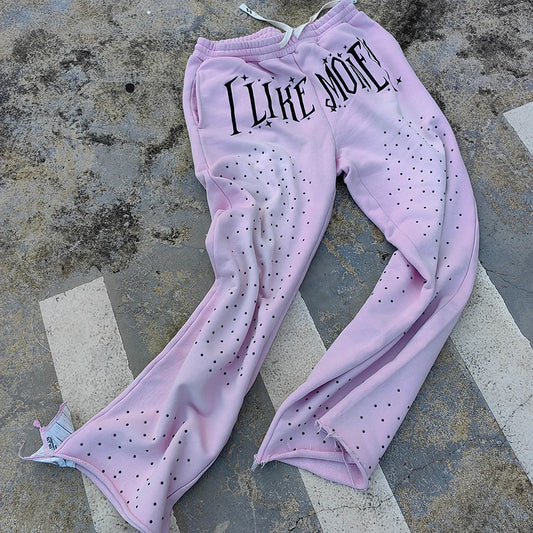 Benutzerdefinierte Stickerei Logo Schwere Baumwolle Jogginghose Sunfaded Washed Männer Raw Saum Unten Breite Bein Strass Jogginghose