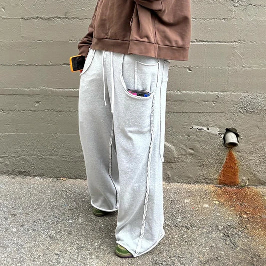 Huilin Custom Elastische Taille Blank Plain Jogginghose Distressed Washed Herren Zerrissen Roh Saum Weites Bein Übergroße Jogginghose