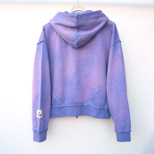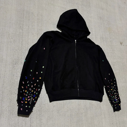 Manufacturer Oem Heavy Weight French Terry 100% Cotton Hoodies Custom Zip Up Men Gemstone Decorated Rhinestone Hoodie