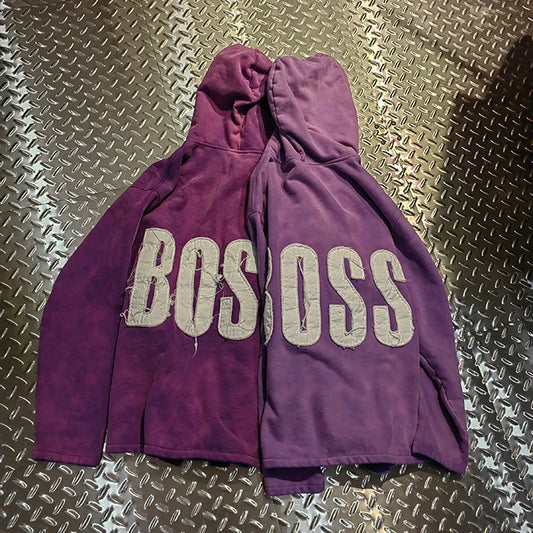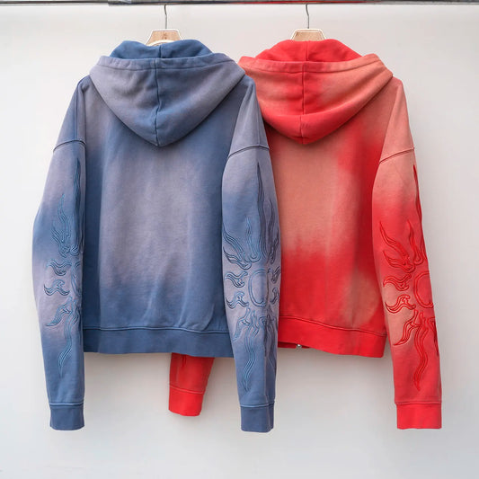 100% Cotton Heavyweight Hoodie Men Custom Applique Patched Oversized Men Sun Faded Washed Zip Up Hoodie