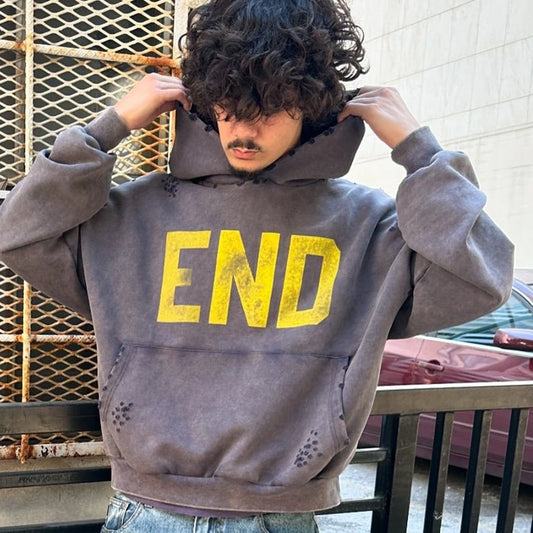 Custom Screen Printing Oversized Fit Heavyweight Hoodies Men Distressed Vintage Washed Thick Cotton French Terry Hoodie