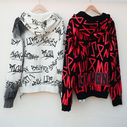 Streetwear Thick Cotton Unisex Oversized Hoodies Custom Allover Printed Graffiti Mens Heavyweight Graphic Hoodie