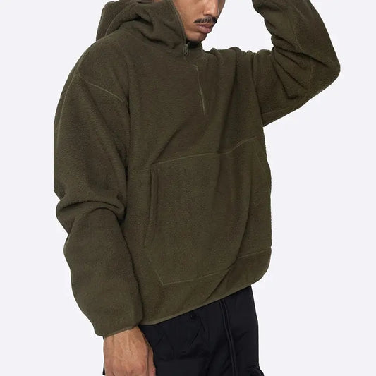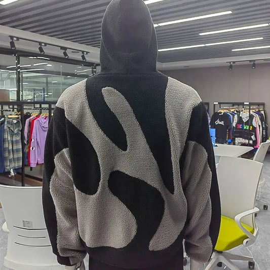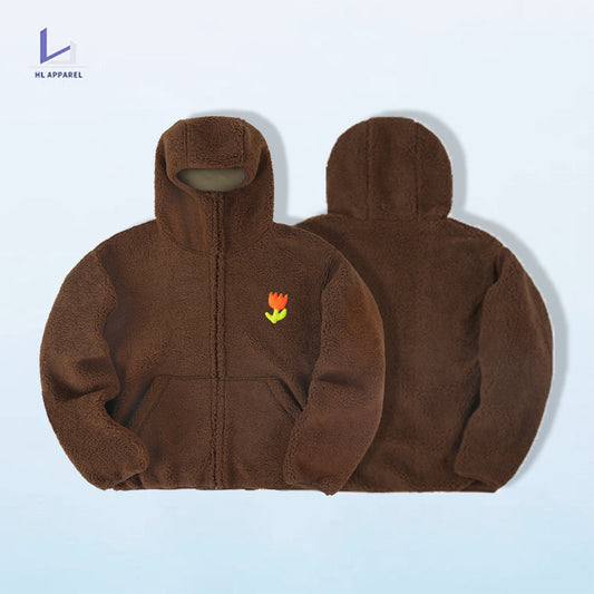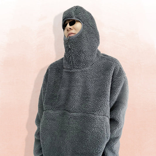 HUILI FACTORY Fleece-Kapuzenpullover mit Sherpa-Maske, flauschig, Ninja-Kapuzenpullover, schwerer, dicker Streetwear-Kapuzenpullover mit Gesichtsreißverschluss