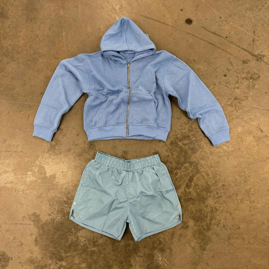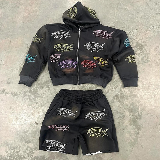 Huilin Factory Oem Herren Streetwear Shorts Trainingsanzüge Set Custom Vintage Washed Herren Stickerei Logo Hoodie Sewat Shorts Sets