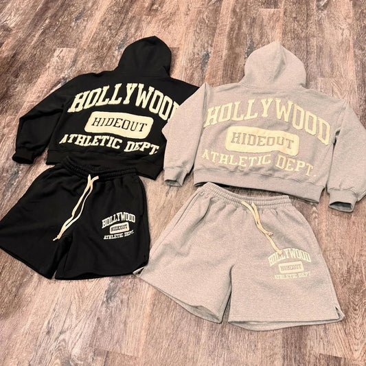 Huilin Hochwertige Streetwear Zweiteilige Hoodie Shorts Sets Benutzerdefinierte Einfarbige Herren Trainingsanzug Sweatsuits