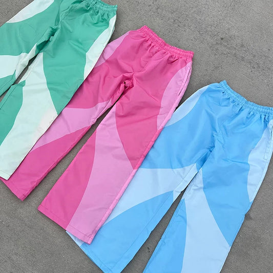 Huilin OEM Unisex Übergroße Passform Elastische Taille Nylonhose Hose Benutzerdefiniertes Farbblockdesign Herren Gerade Trainingshose mit weitem Bein