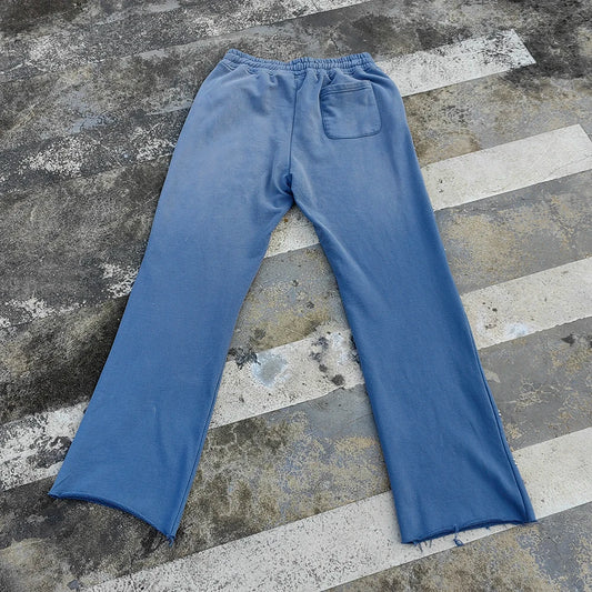 Huilin Factory OEM Vintage Sonnenverblasste, gewaschene Trainingshose aus dicker Baumwolle für Herren, individuell gestalteter, roher Saum, ausgestelltes Bein, Strass-Jogginghose