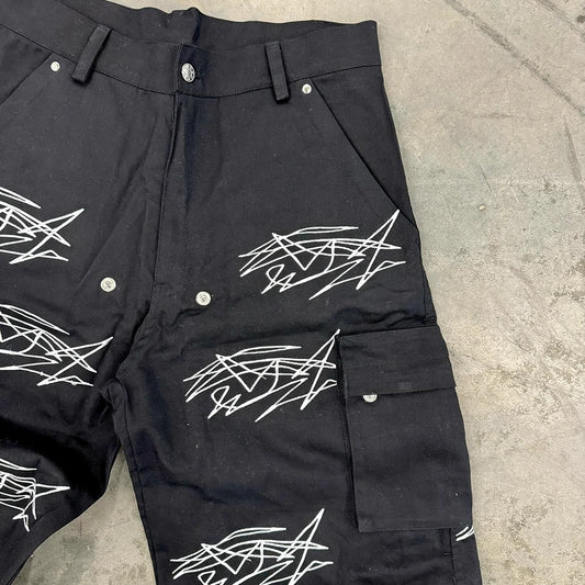 Huilin New Trend Benutzerdefinierter Logodruck Dicke Arbeitshose aus Baumwolle Übergroße Baggy-Cargohose für Herren mit weitem Bein