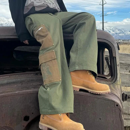 Maßgeschneiderte, hochwertige, übergroße Baggy-Twill-Baumwolle mit weitem, geradem Bein und ausgestelltem Jogger, Carpenter Tactical Work Cargo Pants für Männer