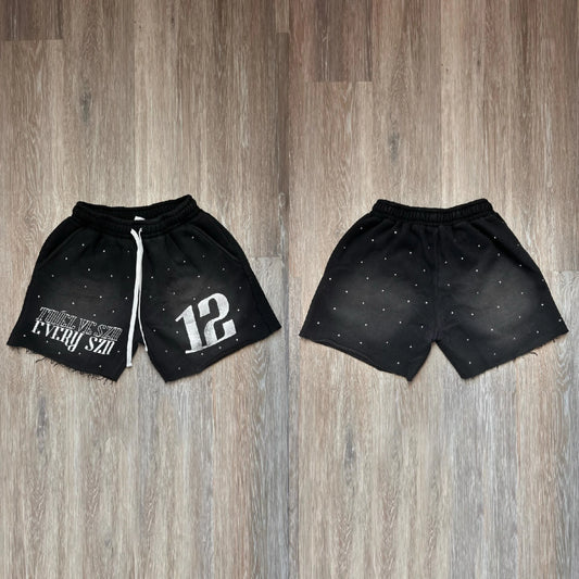 Huilin Individuelle Acid-Wash-Vintage-Shorts für Herren, schwere Sweat-Shorts aus französischem Frottee aus Baumwolle, individuell bedruckte Shorts mit Strasssteinen, sonnenverblasst