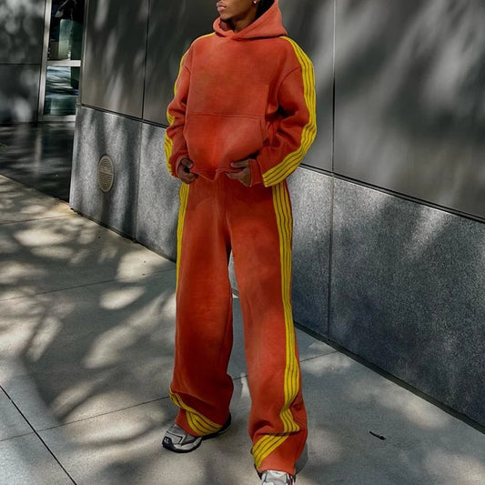 Huilin Hersteller Schwergewicht Baumwolle Zweiteiler Set Kapuzenpullover Jogginghose Custom Vintage Washed Sunfaded Herren Gestreifte Trainingsanzüge Set