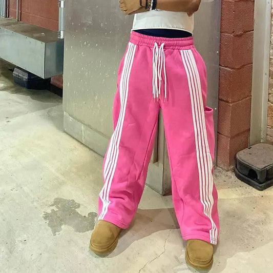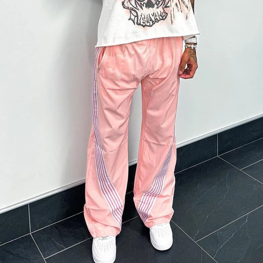 Huilin OEM Streetwear Unisex Sportswear Hose Hose Benutzerdefinierte gestreifte Trimmung Wendbare gerade weites Bein Herren Trainingshose