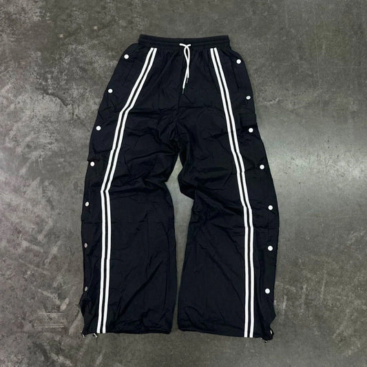 Huilin Custom Leichte Streetwear-Hose mit Druckknopf, farbig gestreifte Seitenhose für Herren, übergroße Passform, Baggy-Trainingshose aus Nylon mit weitem Bein