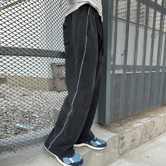 Huilin Winter-Jogginghose aus schwerer Baumwolle, individuelle Kontrastnähte, verstellbarer Saum, weites Bein, Vintage-Jogginghose