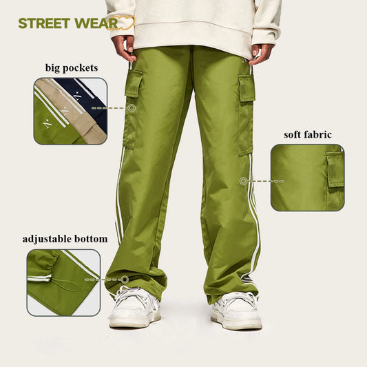 Oversized Fit Cargo Track Pants Men Custom Side Stripe Straight Wide Leg Baggy Parachute Pants