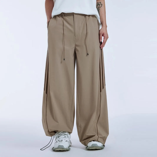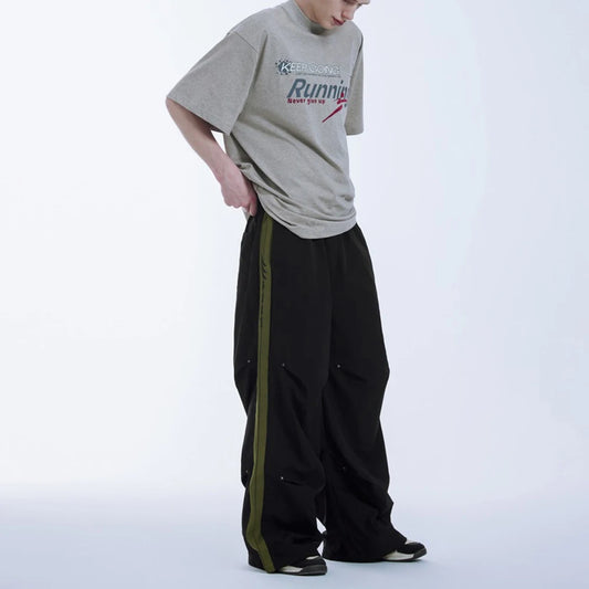 Adjustable Bottom Oversized Track Pants Men Custom Contrast Stripe Baggy Wide Leg Parachute Pants