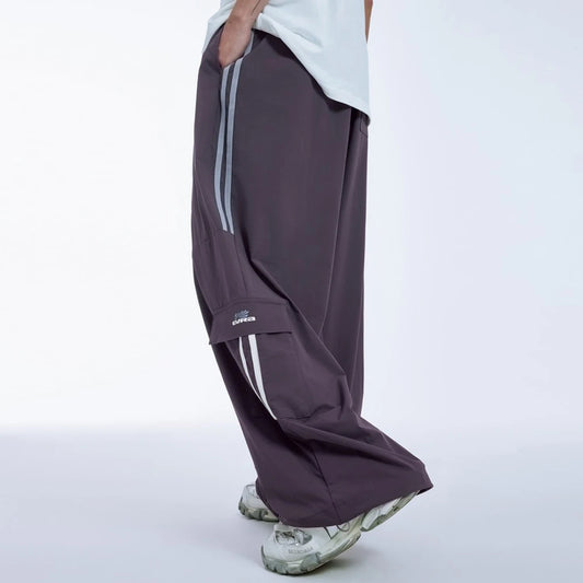 Streetwear Polyester Cargo Parachute Pants Side Striped Men Custom Baggy Wide Leg Oversized Track Pants