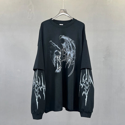 New Trend Unisex Loose Fit Thick Cotton Tshirts Custom Graphic Print Men 305Gsm Heavyweight Double Layer Long Sleeve T Shirt