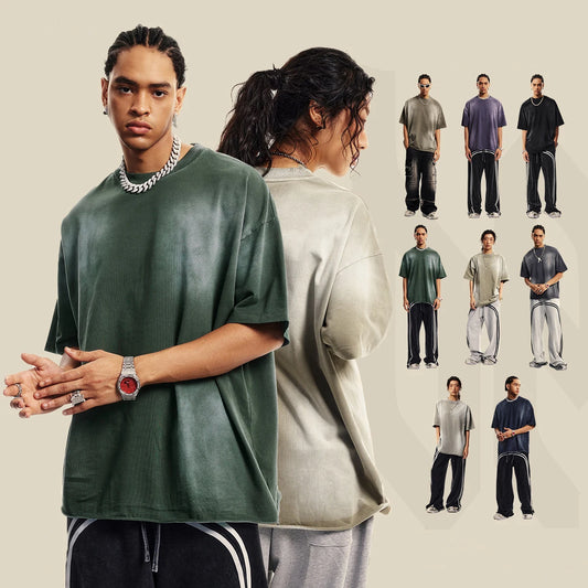 manufacturer washed loose edge oversize short sleeve vintage High street style street fashion couple T-shirt
